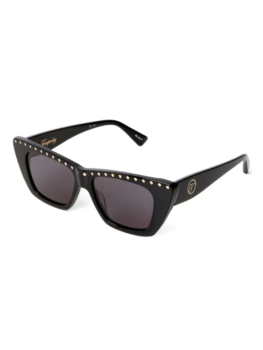 zwart cat-eye montuur verfraaid met studs goudkleurige studs Deze bril wordt verkocht met een beschermhoes.
