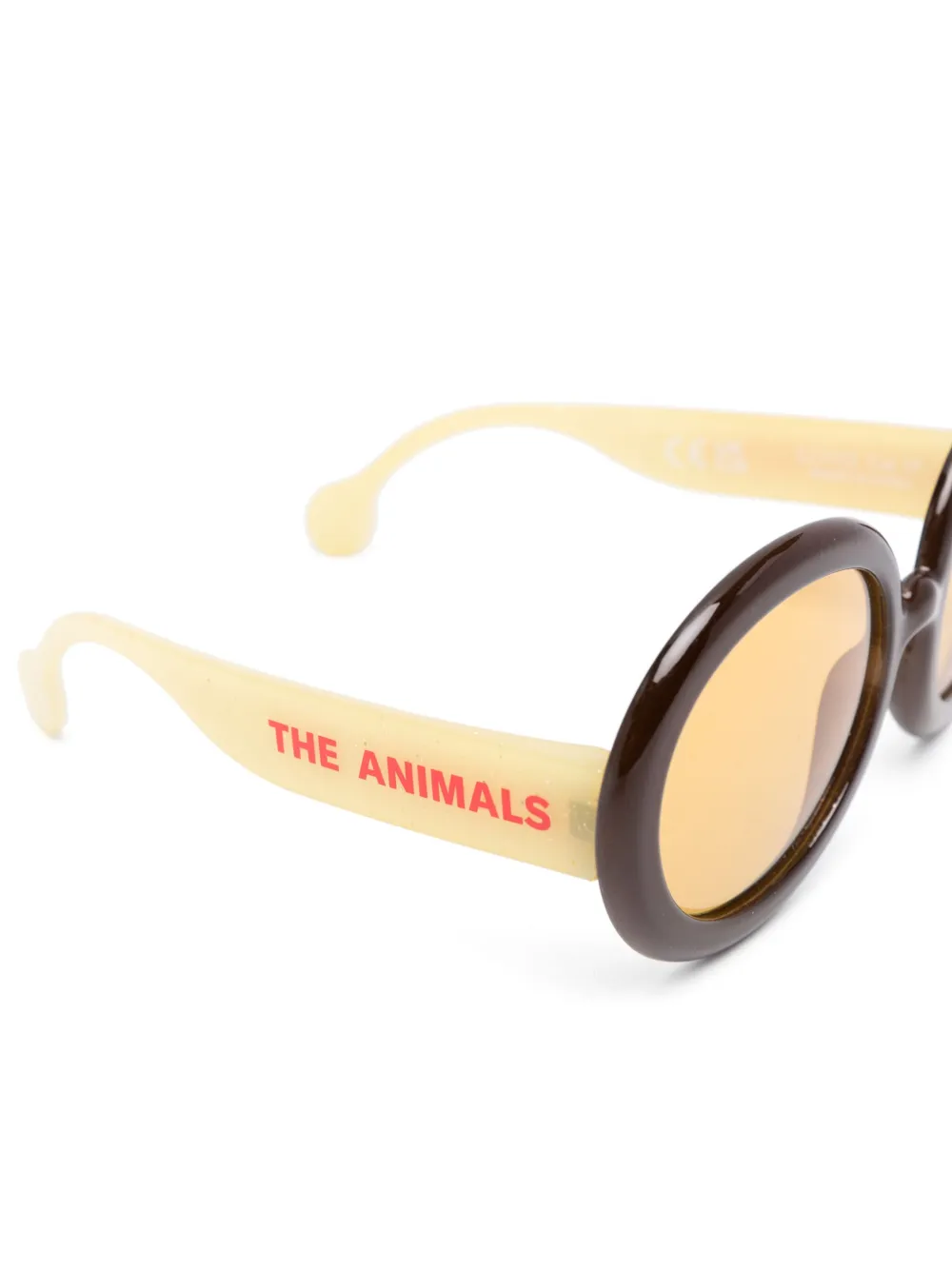 Bruin, geel, ECONYL®, rond montuur, gekleurde glazen, geschulpte pootjes, gebogen uiteinde, logoprint aan de zijkant en UV-bescherming. Deze bril wordt verkocht met een beschermhoes..