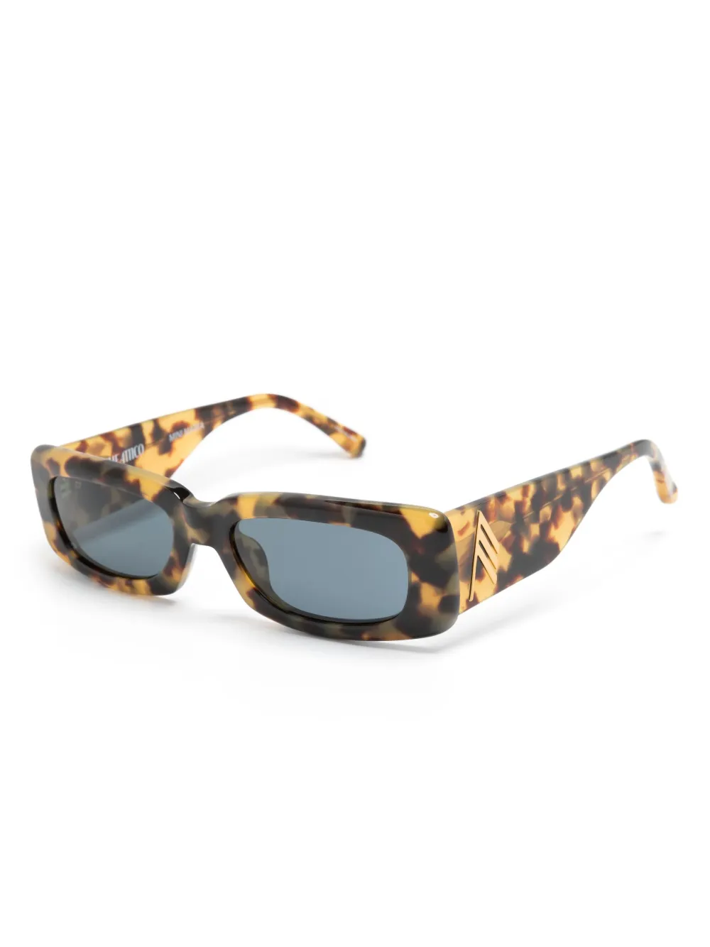 bruin, geel acetaat rechthoekig montuur schildpad montuur blauwe glazen oversized pootjes goudkleurig logoplakkaat gebogen uiteinden Deze bril wordt verkocht met een beschermhoes.