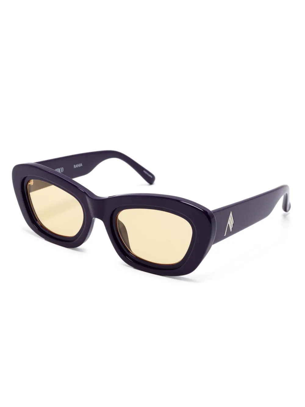 paars cat-eye montuur gele glazen logoplakkaat op het pootje rechte pootjes gebogen uiteinden Deze bril wordt verkocht met een beschermhoes.