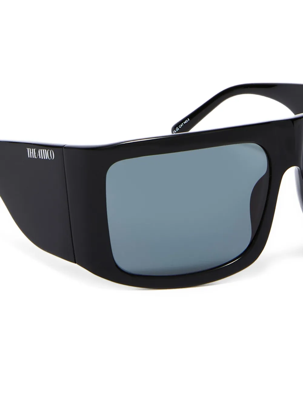 zwart rechthoekig montuur grijze glazen logodetail rechte pootjes Deze bril wordt verkocht met een beschermhoes.