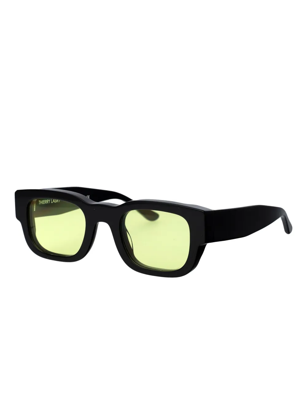zwart rechthoekig montuur gekleurde glazen brede pootjes Deze bril wordt verkocht met een beschermhoes.
