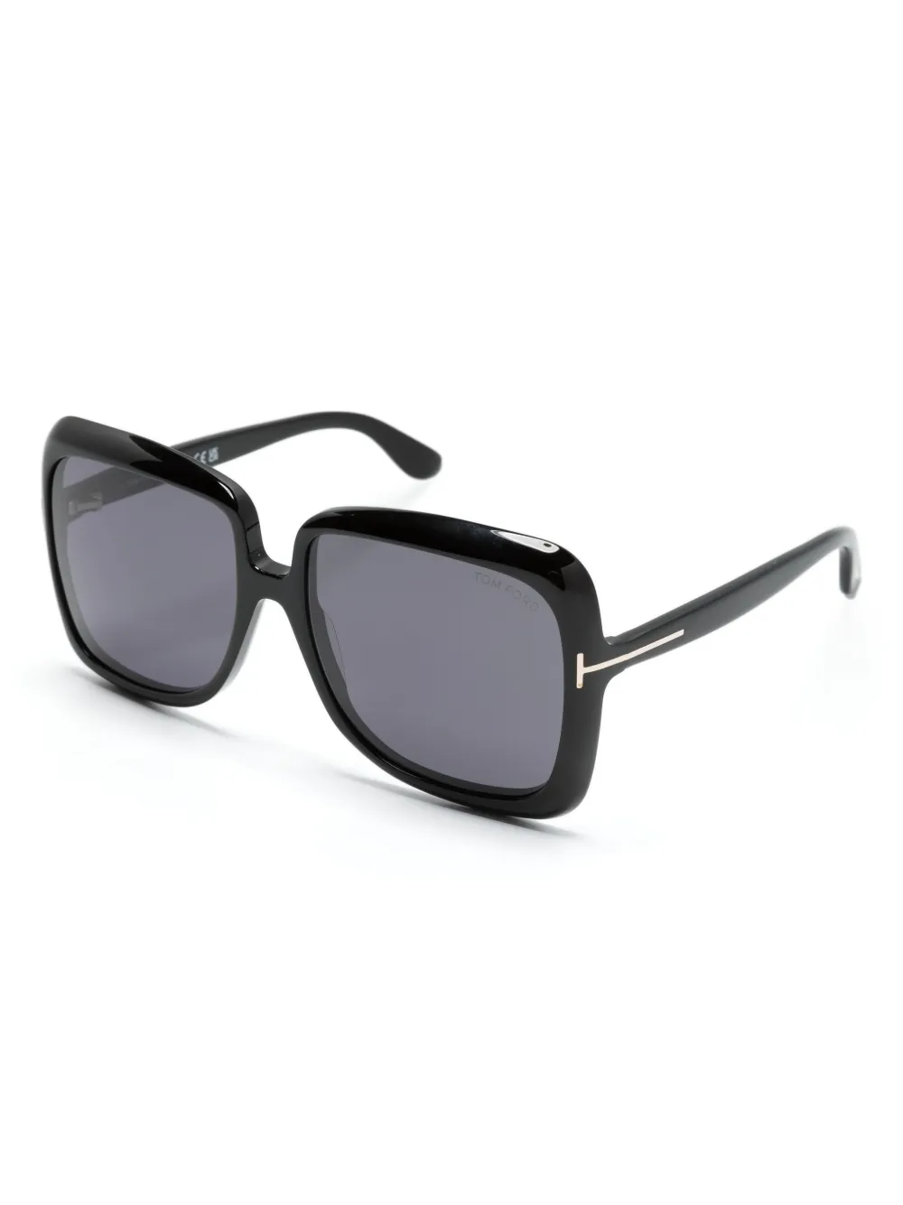 zwart acetaat oversized montuur grijze glazen goudkleurig logoplakkaat op het uiteinde rechte poten met gebogen uiteinden Deze bril wordt verkocht met een beschermhoes.
