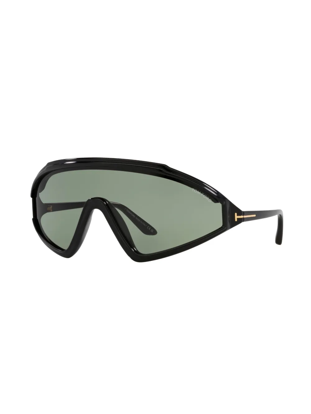 zwart shield montuur gekleurde glazen rechte pootjes gebogen uiteinden Deze bril wordt verkocht met een beschermhoes.