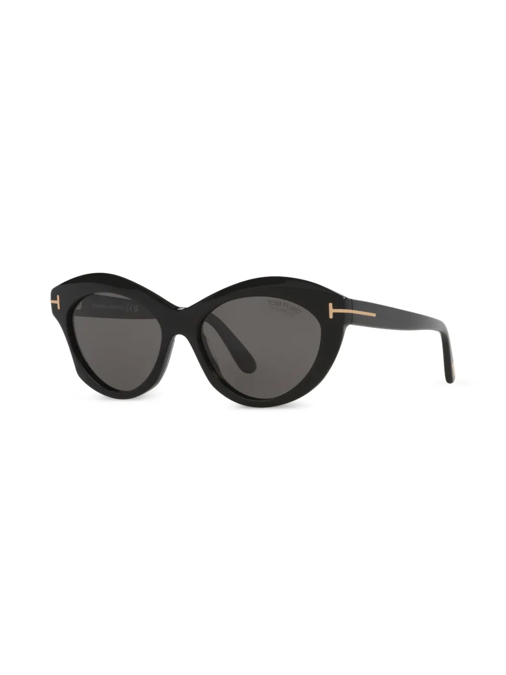 zwart acetaat cat-eye montuur gekleurde glazen glazen met UV-bescherming goudkleurige hardware T-vormig scharnierdetail rechte pootjes gebogen uiteinden Deze bril wordt verkocht met een beschermhoes.