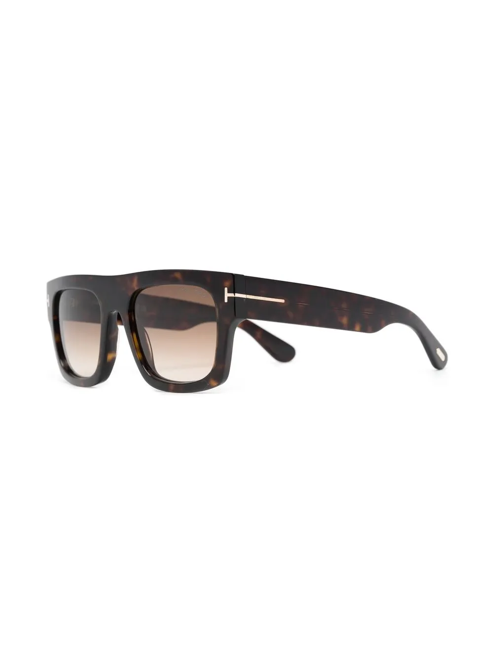 Bruin, acetaat, schildpad montuur, vierkant montuur, glazen met kleurverloop, logoprint op het pootje en rechte pootjes. Deze bril wordt verkocht met een beschermhoes..