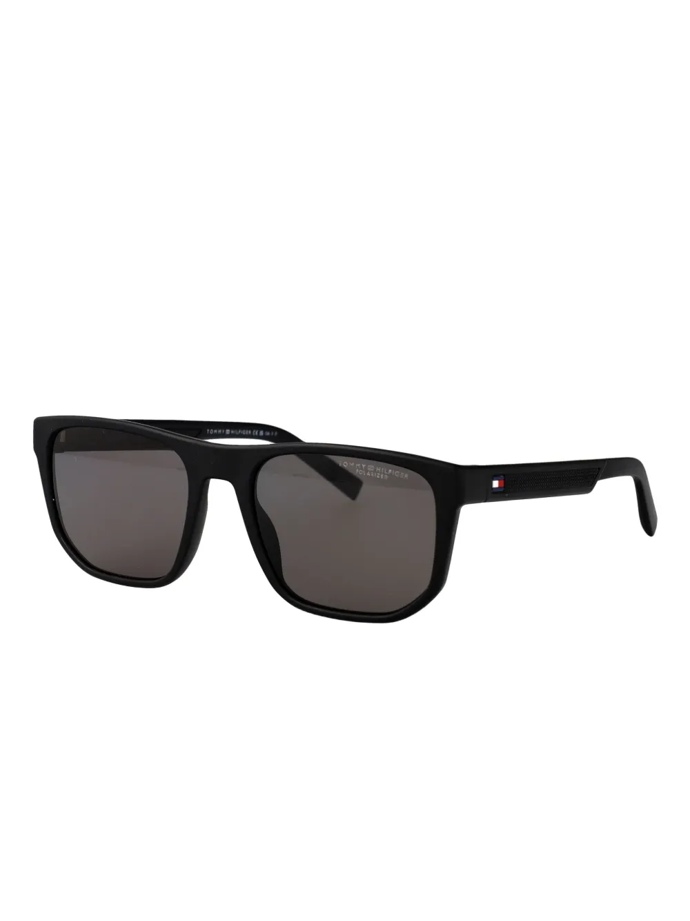 zwart rechthoekig montuur poten met textuur logodetail merkdetail op glazen Deze bril wordt verkocht met een beschermhoes.