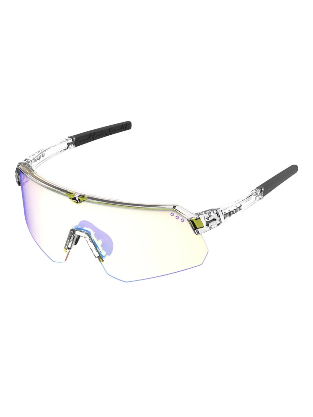 neutraal biker montuur gekleurde glazen zwarte pootjes subtiel logo Deze bril wordt verkocht met een beschermhoes.