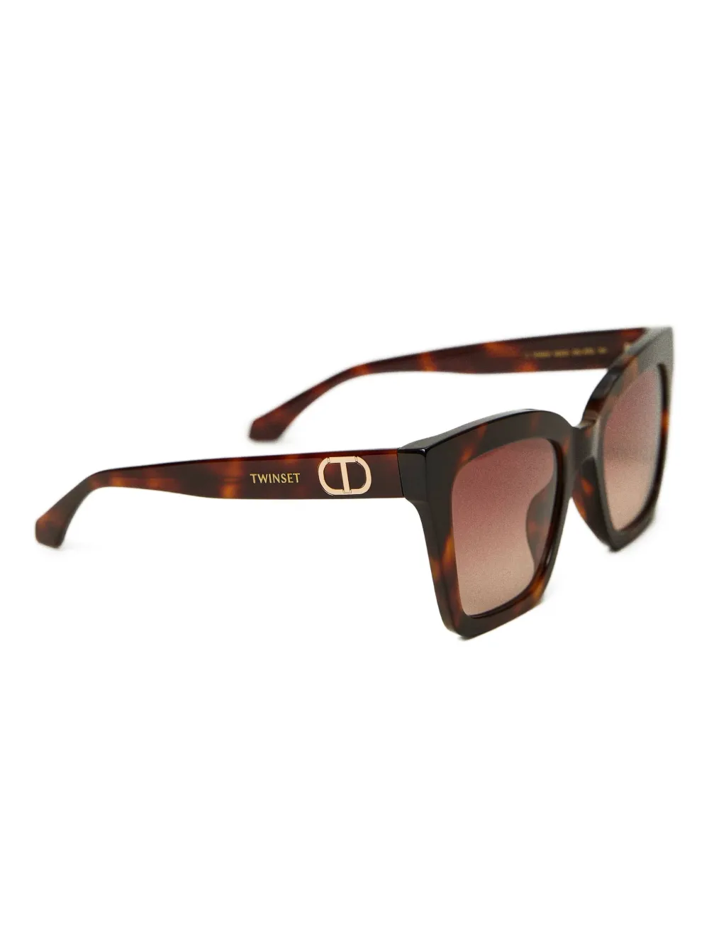 bruin glazen met kleurverloop logodetail op de pootjes geometrisch montuur stevige poten Deze bril wordt verkocht met een beschermhoes.