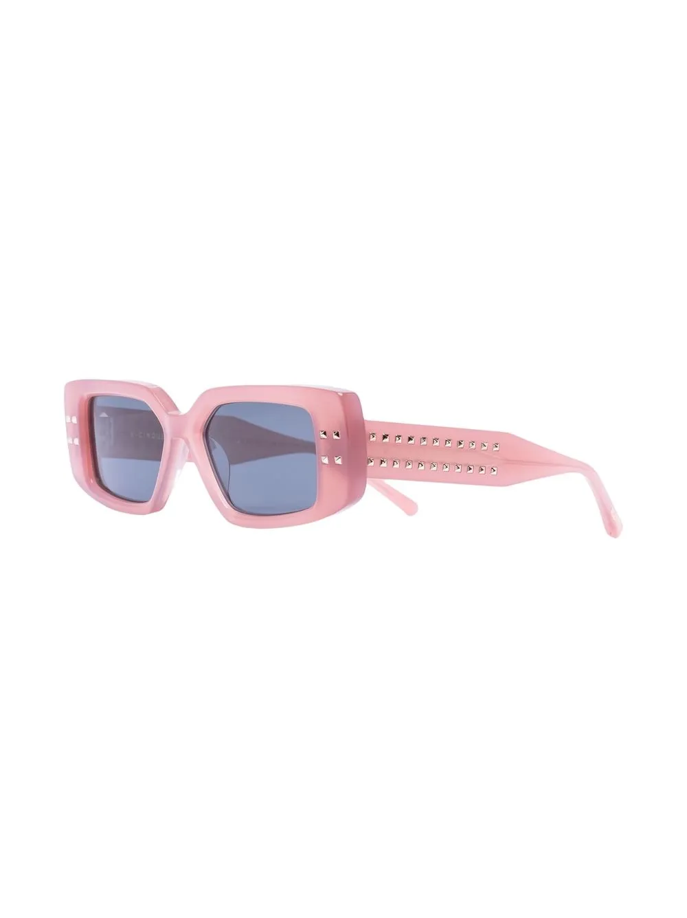 Kauwgomroze, paarse glazen, goudkleurig materiaal, rechte pootjes en gebogen uiteinde. Alle brillen op FARFETCH worden verkocht met glazen die niet op sterkte zijn..