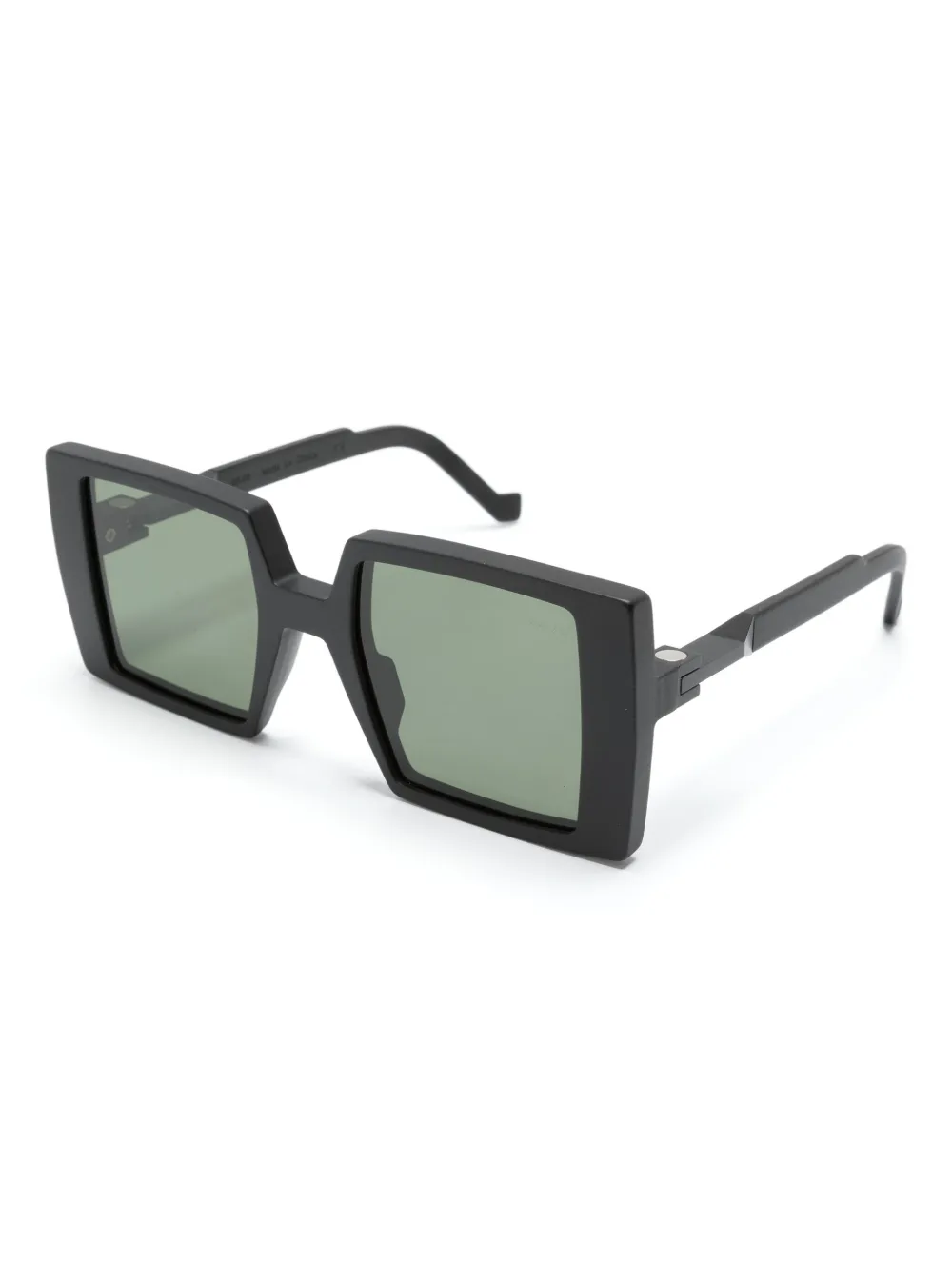 zwart acetaat/aluminium matte-effect oversized vierkant montuur groengetinte glazen logo lens sticker tonale hardware aan de arm rechte poten met gebogen uiteinden Deze bril wordt verkocht met een beschermhoes.