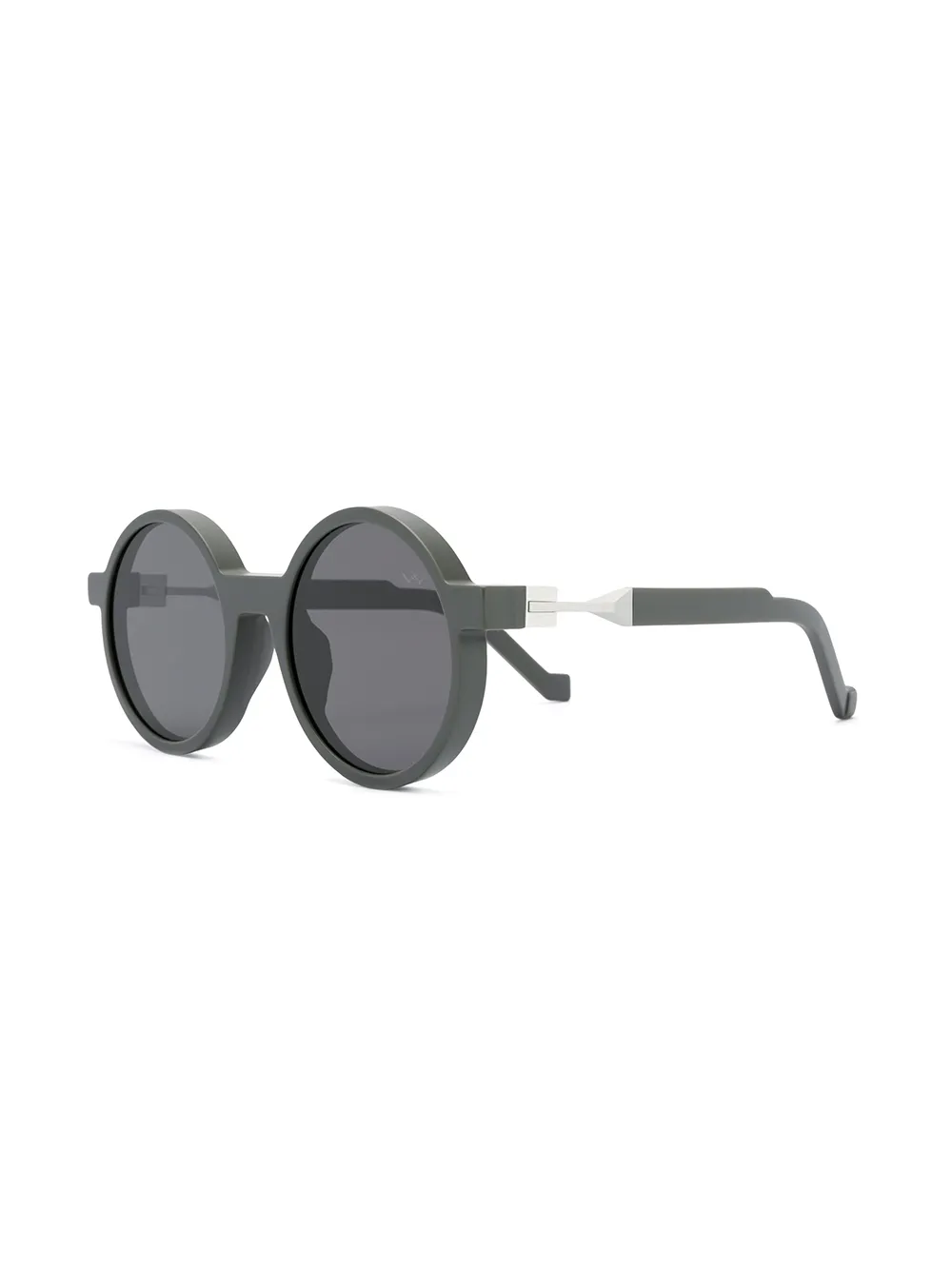 Zonnebril met rond montuur van Vava uitgevoerd in aluminium voorzien van rond montuur, gestrekte armen met hoekig uiteinde, donker getinte glazen, 100% UV en UVB- bescherming en logo op de tempel.