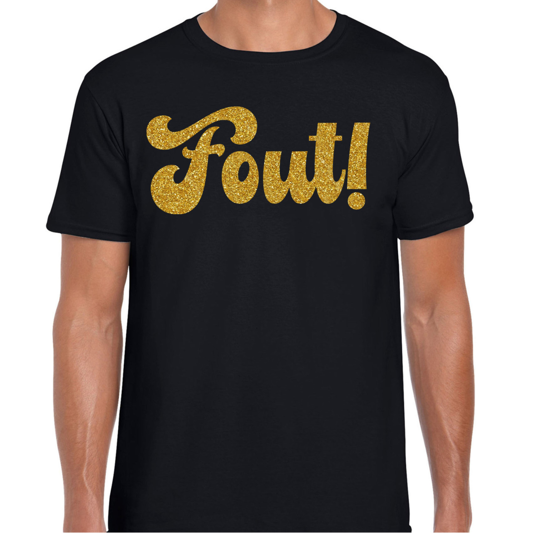 Dit verkleed T-shirt voor heren zegt alles wat je hoeft te weten: fout en trots daarop. Met de glitter gouden opdruk “Fout!” op een zwart T-shirt ben jij helemaal in stijl voor een fout/goud/stout themafeest. De sprankelende letters zorgen voor een opvallende look, terwijl de comfortabele pasvorm ervoor zorgt dat je de hele avond kunt stralen en dansen. Ideaal voor iedereen die houdt van een beetje gekkigheid met een vleugje glamour. Het shirt is ideaal te combineren met een foute broek of juist een gouden accessoire voor die extra “fout, goud, stout” touch. Perfect voor feestjes waar alles mag en niks moet! Stout, goud of gewoon lekker fout? Met dit T-shirt maak jij sowieso een statement op elk feest! Trek dit T-shirt aan en vier het leven op z?n foutst, hoe fouter, hoe beter! Materiaal: 145 grams, 100% katoen. Merk: Bellatio Decorations.