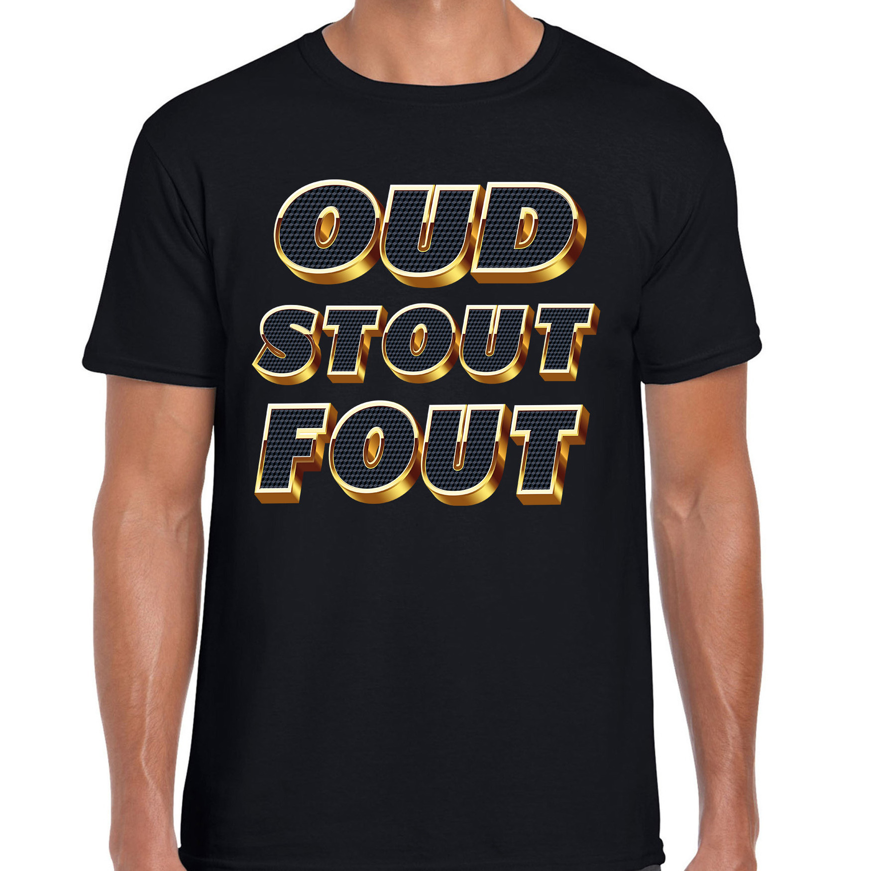 Verkleed T-shirt heren – De Sjaak! – zwart – glitter goud – foute party