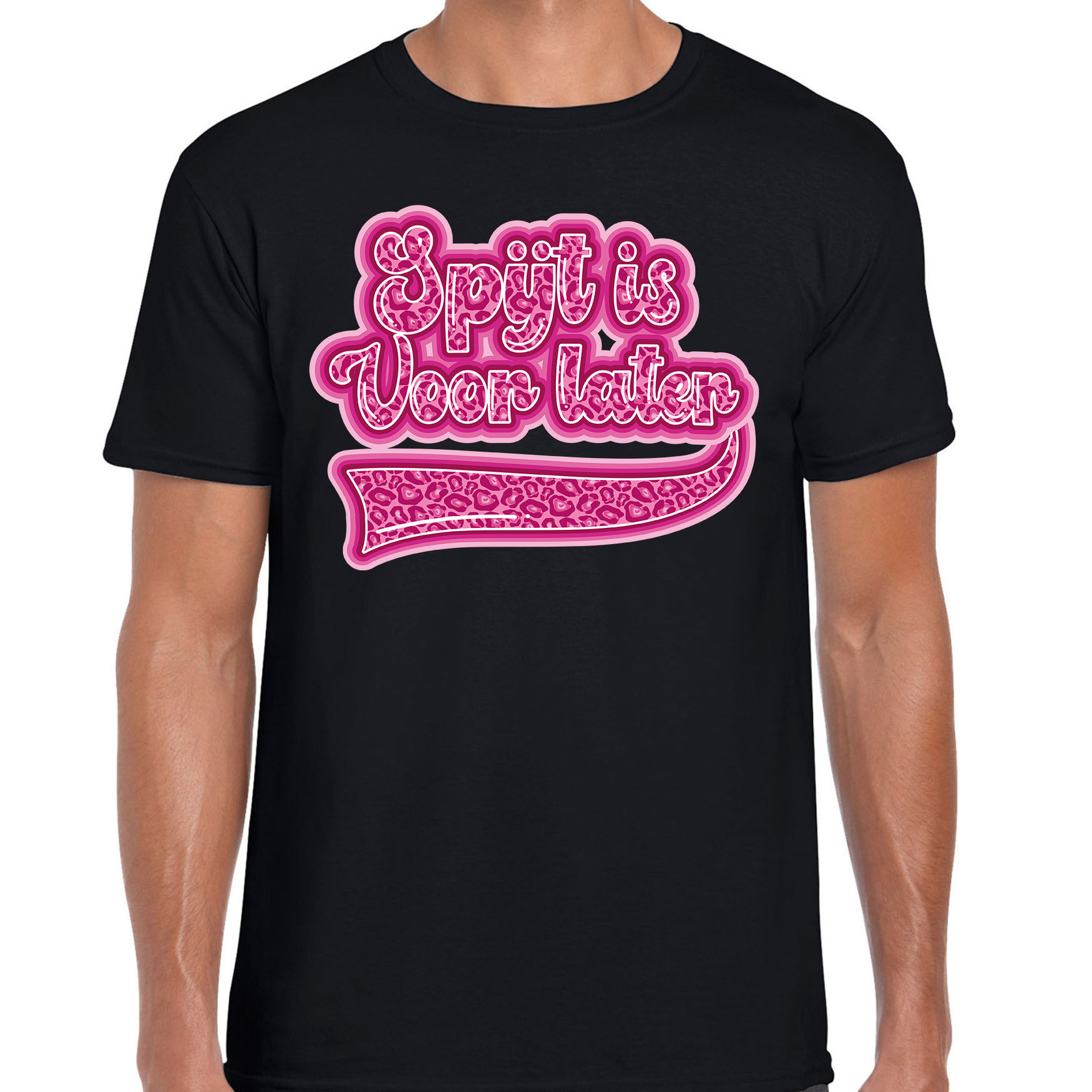 Ga jij voor een avond zonder remmen? Dan is dit zwarte verkleed T-shirt met de tekst “Spijt is voor later” de perfecte keuze! Ideaal voor foute feestjes, goud en stout-thema?s of een avond vol gekkigheid. Het shirt heeft een comfortabele pasvorm en is gemaakt van zacht materiaal, zodat jij zorgeloos kunt feesten. Trek ?m aan, laat de boel de boel en geniet, want spijt? Dat is voor morgen! Feest hard, lach veel en denk later pas na, dit shirt is jouw offici?le excuus voor een legendarische avond! Materiaal: 145 grams, 100% katoen. Merk: Bellatio Decorations.