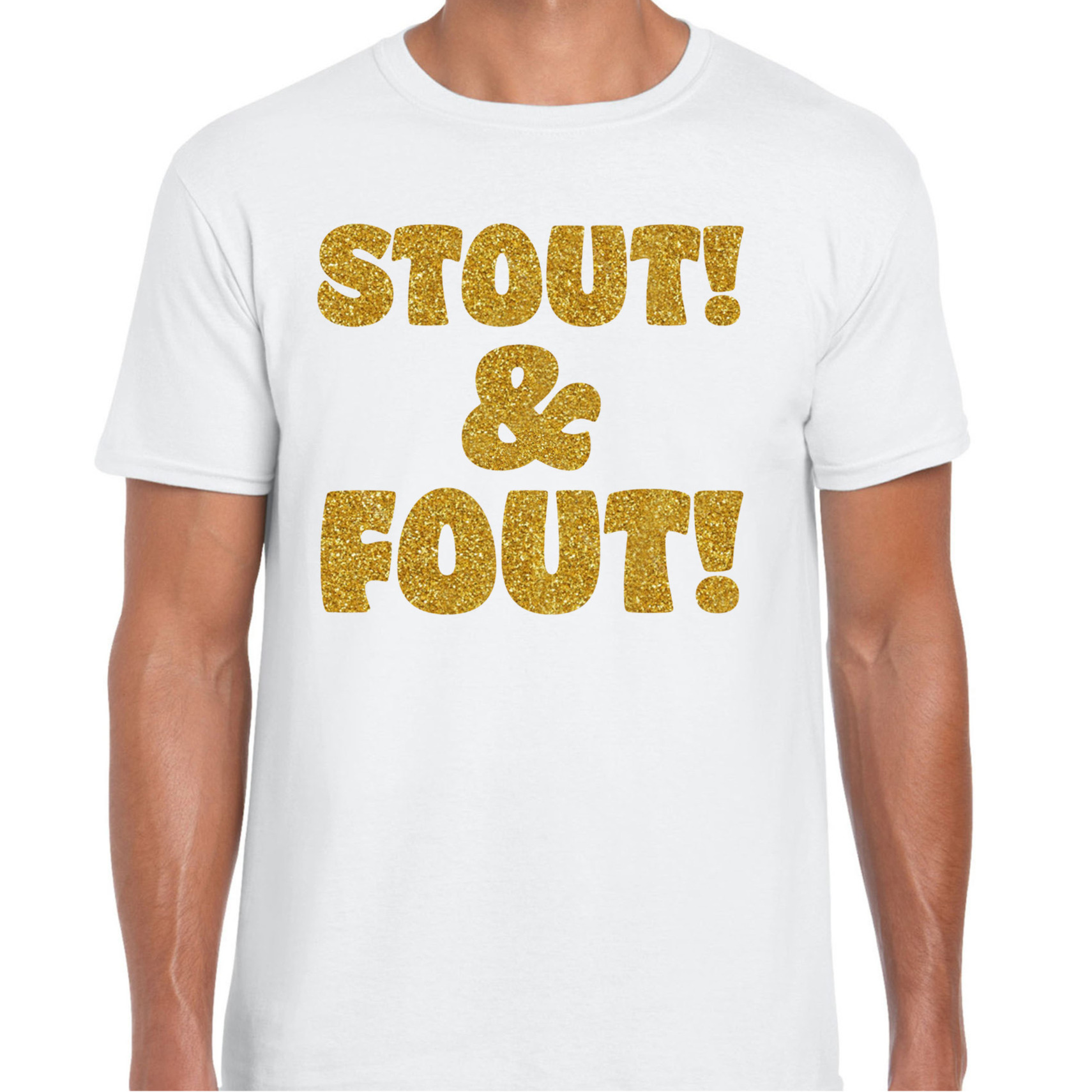Dit verkleed T-shirt voor heren is de ultieme keuze voor een themafeest waar je niet onopgemerkt wilt blijven. Het witte T-shirt met de glittergouden opdruk van “stout! en fout!” maakt direct duidelijk dat jij klaar bent om te stralen. Of je nu het fout/goud/stout thema omarmt of gewoon zin hebt om je gewaagde kant te tonen, dit T-shirt voegt de perfecte dosis flair en speelsheid toe aan je look. De combinatie van glittergoud en de gedurfde tekst zorgt voor de perfecte balans tussen rebels en feestelijk. Het shirt is ideaal te combineren met een foute broek of juist een gouden accessoire voor die extra “fout, goud, stout” touch. Perfect voor feestjes waar alles mag en niks moet! Stout, goud of gewoon lekker fout? Met dit T-shirt maak jij sowieso een statement op elk feest! Trek dit T-shirt aan en maak van jezelf de ster van het feest, stout, fout, maar oh zo leuk! Materiaal: 145 grams, 100% katoen. Merk: Bellatio Decorations.