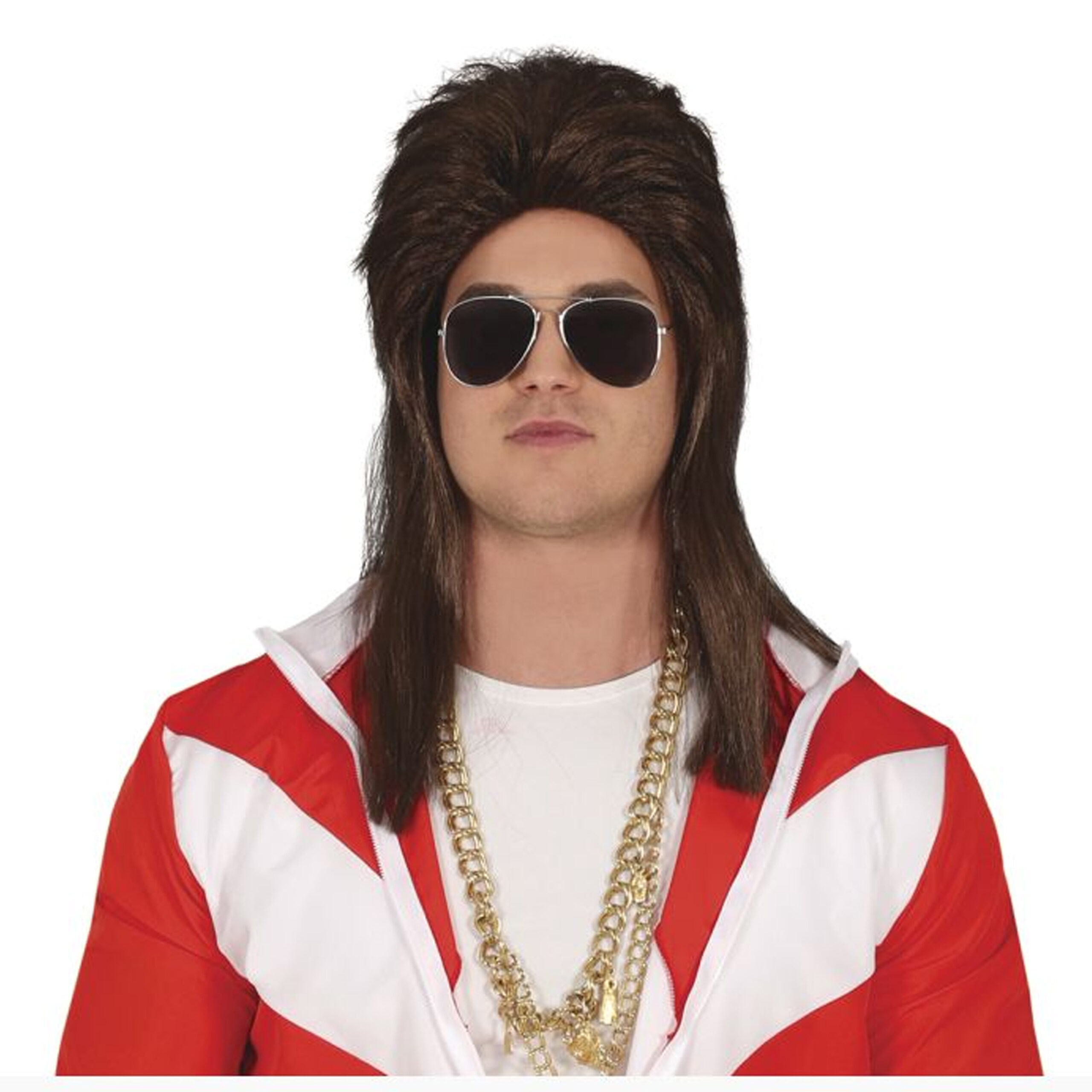 Verkleedpruik voor heren met stijl lang bruin haar. Ga terug naar de swingende jaren ’70 met deze bruine verkleedpruik voor heren, perfect voor Carnaval, Seventies-themafeesten of disco-avonden. De pruik heeft stijl, lang haar dat de typische haarstijl van de jaren ’70 weerspiegelt, ideaal om de look van een disco king of rockster uit die tijd na te bootsen. Deze pruik is een must-have voor iedereen die het discotijdperk of de rockstijl van de jaren ’70 wil herleven. Perfect voor verkleedfeesten, thema-avonden, of om indruk te maken tijdens Carnaval!