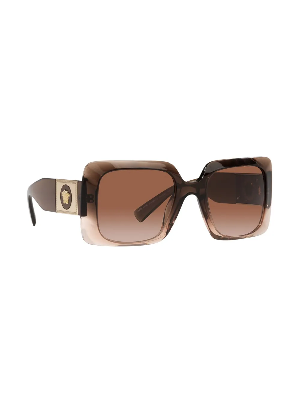 bruin acetaat Medusa patroon vierkant montuur glazen met kleurverloop goudkleurige hardware oversized pootjes gebogen uiteinden Deze bril wordt verkocht met een beschermhoes.