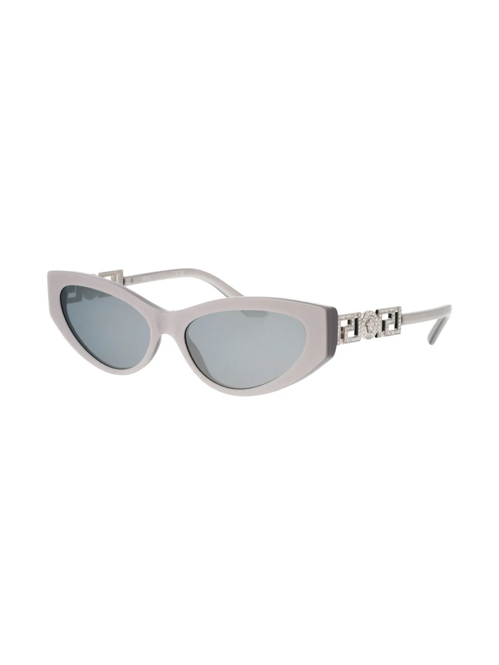 grijs metaal acetaat ovaal montuur grijze glazen gebogen uiteinden logo bedrukt pootje Deze bril wordt verkocht met een beschermhoes.