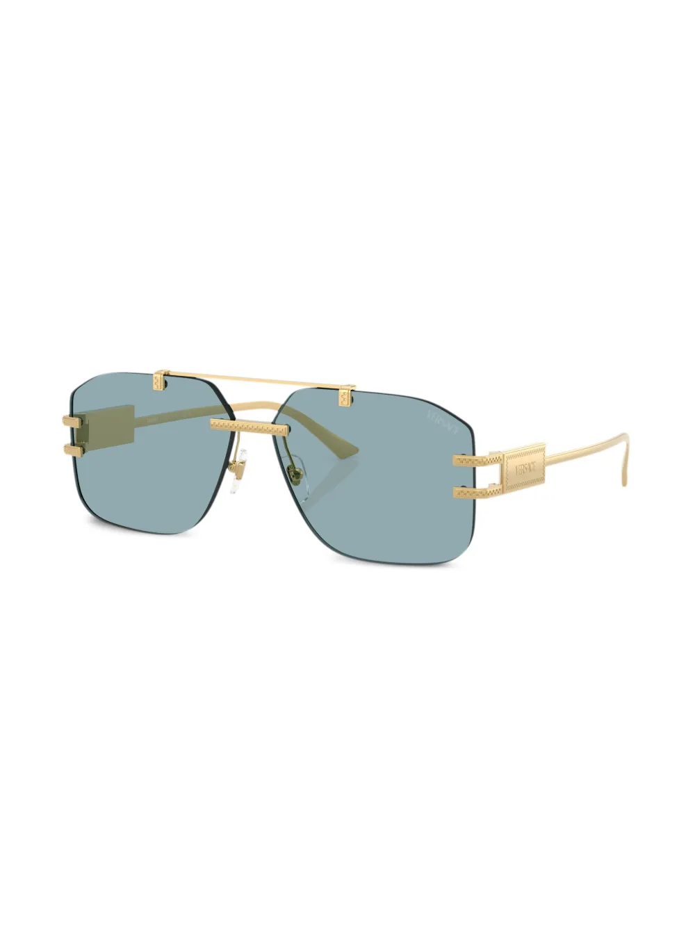 goudkleurig piloten montuur metallic-effect dubbele neusbrug blauwe glazen rechte pootjes reliëf-detail logoplakkaat op de poot gebogen uiteinden neuskussentjes Deze bril wordt verkocht met een beschermhoes.