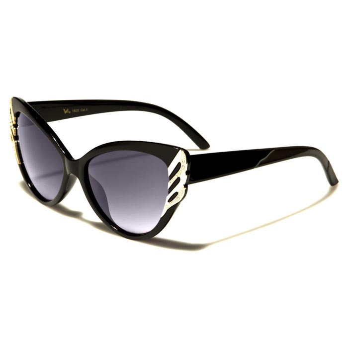 VG Eyewear dames zonnebril Cat Eye in zwart met goud. Deze zonnebril is afgewerkt met 100% UV400 bescherming. >