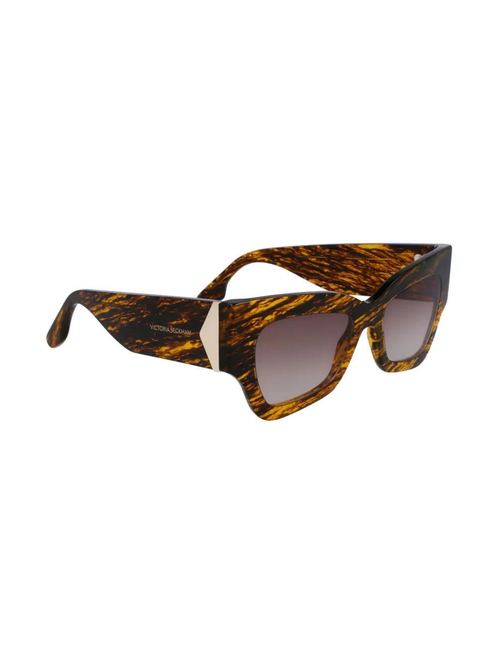 bruin acetaat doorzichtig ontwerp cat-eye montuur gekleurde glazen logoprint op de brillenpoot oversized pootjes gebogen uiteinden Deze bril wordt verkocht met een beschermhoes.