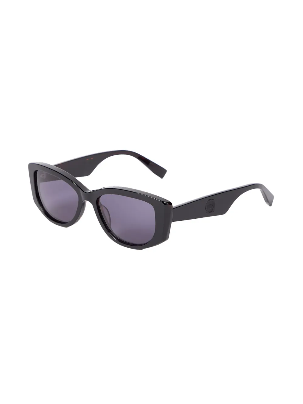 zwart gekleurde glazen logoplakkaat op de poot gebogen uiteinden Deze bril wordt verkocht met een beschermhoes.