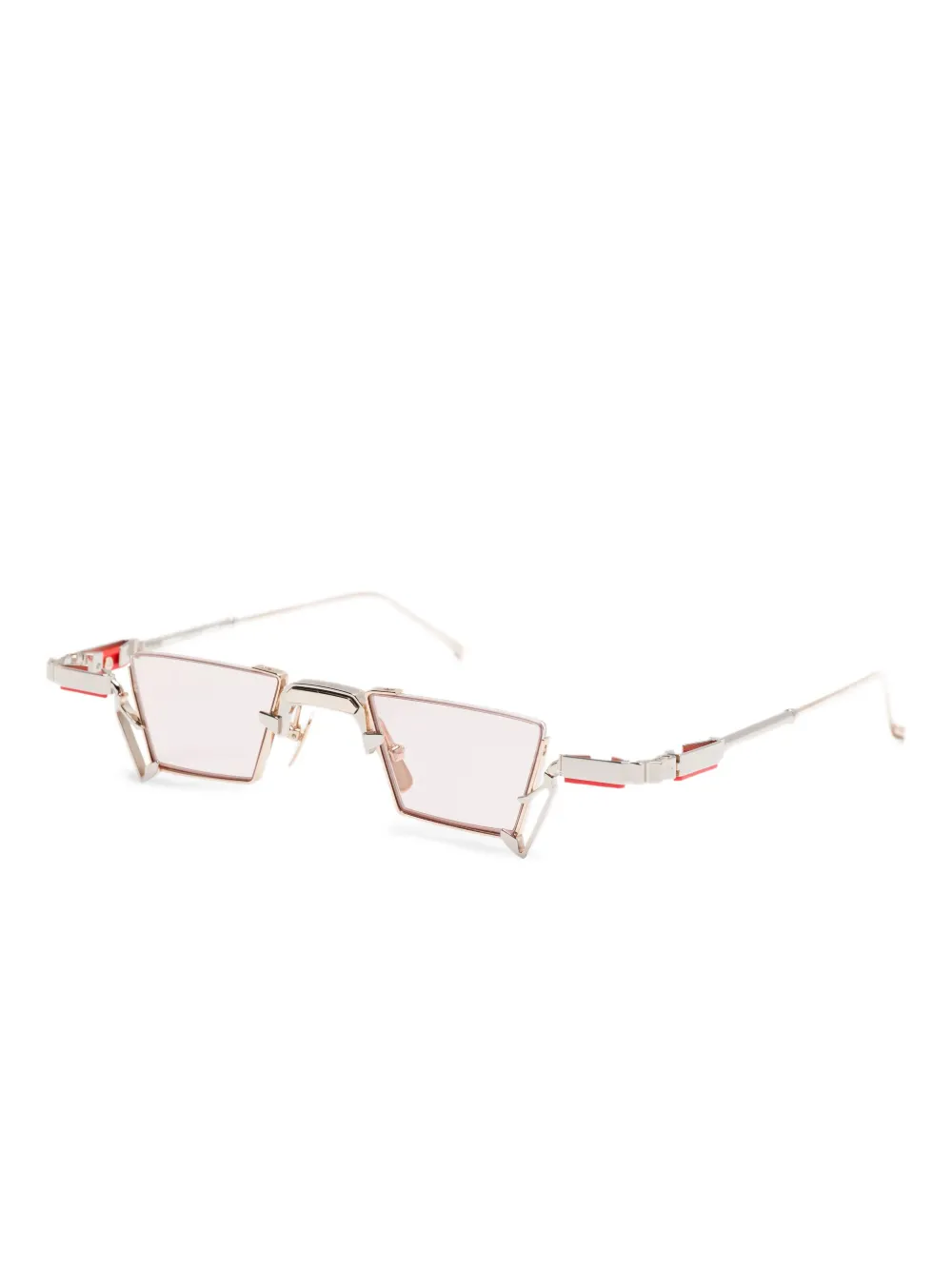 zilverkleurig geometrisch montuur roze glazen neuskussentjes Deze bril wordt verkocht met een beschermhoes.