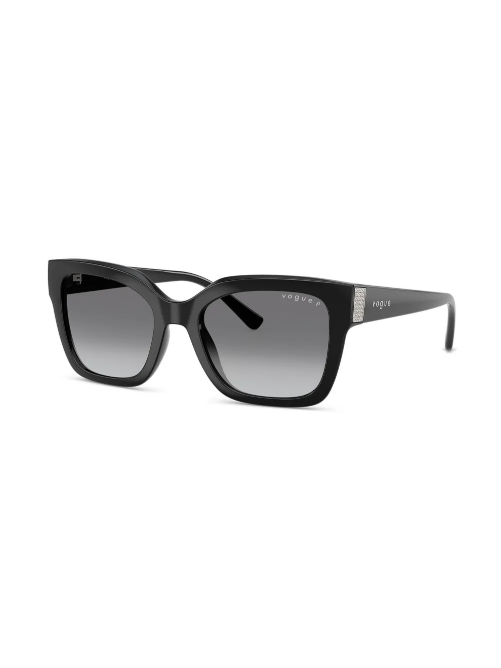 zwart rechthoekig montuur grijze glazen gebogen uiteinden pootje met gegraveerd logo Deze bril wordt verkocht met een beschermhoes.