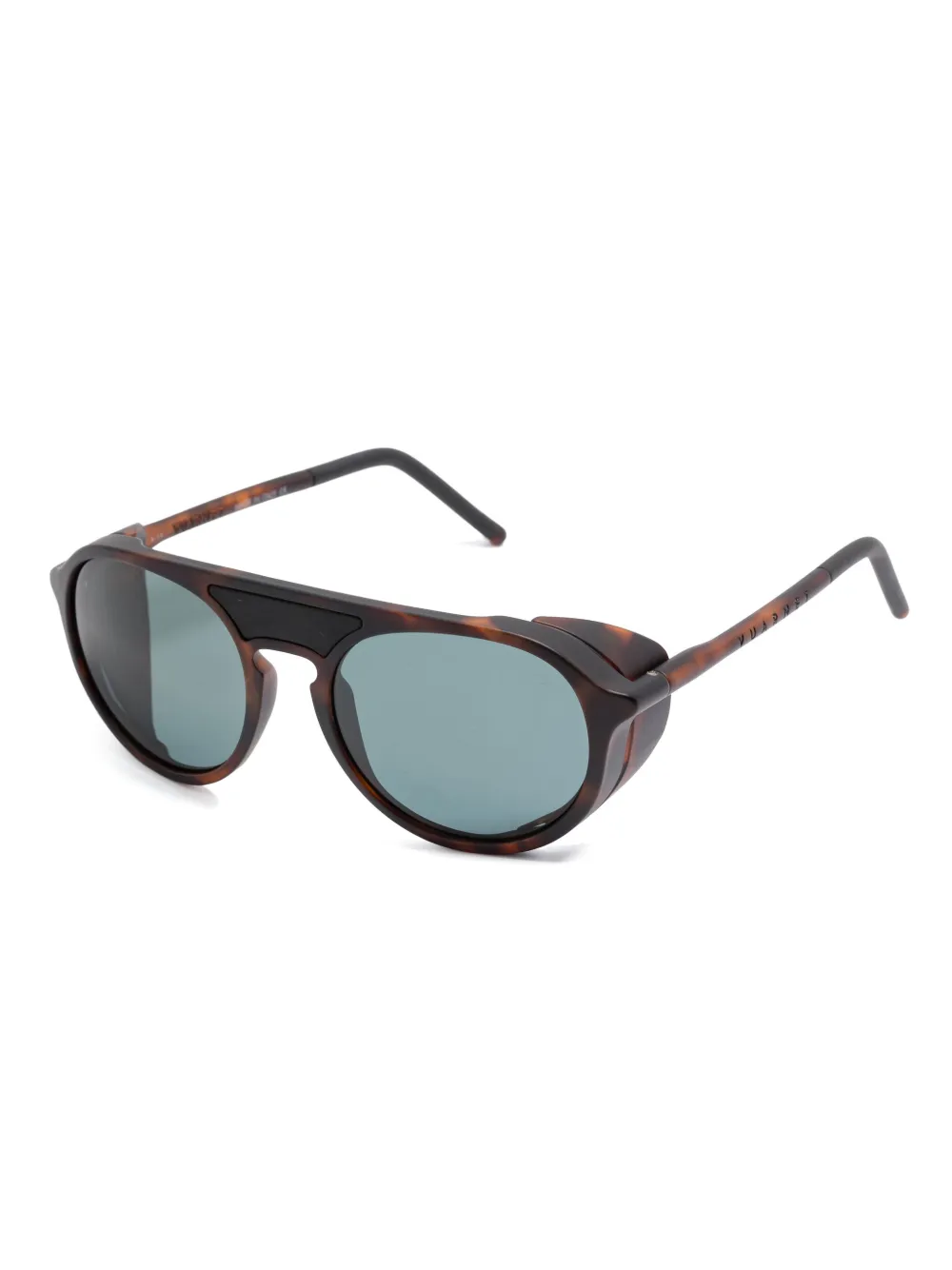 donker cederbruin matte-effect piloten montuur grijze glazen polariserende glazen verhoogde neusbrug schilden details aan de zijkant rechte pootjes pootje met logo-reliëf gebogen uiteinden Deze bril wordt verkocht met een beschermhoes. Alle brillen op FARFETCH worden verkocht met glazen die niet op sterkte zijn.
