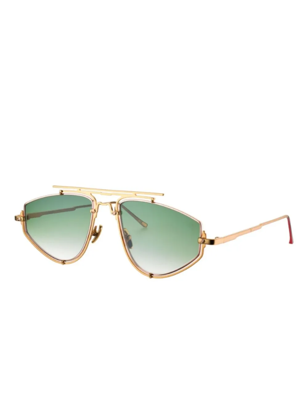 goudkleurig geometrisch montuur dubbele neusbrug neuskussentjes Deze bril wordt verkocht met een beschermhoes.