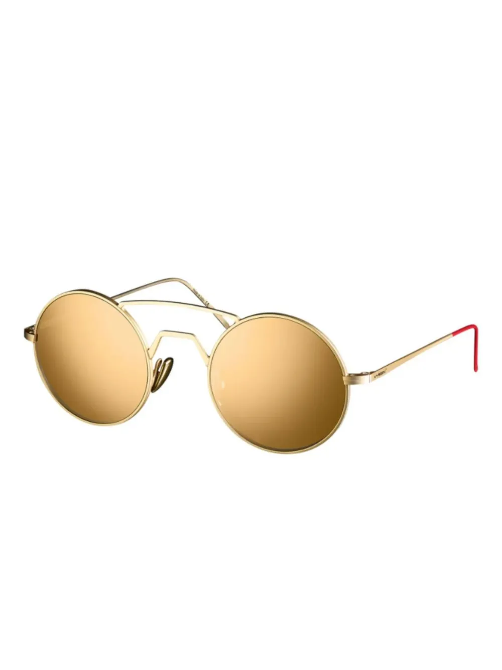 goudkleurig rond montuur dubbele neusbrug neuskussentjes rechte pootjes Deze bril wordt verkocht met een beschermhoes.