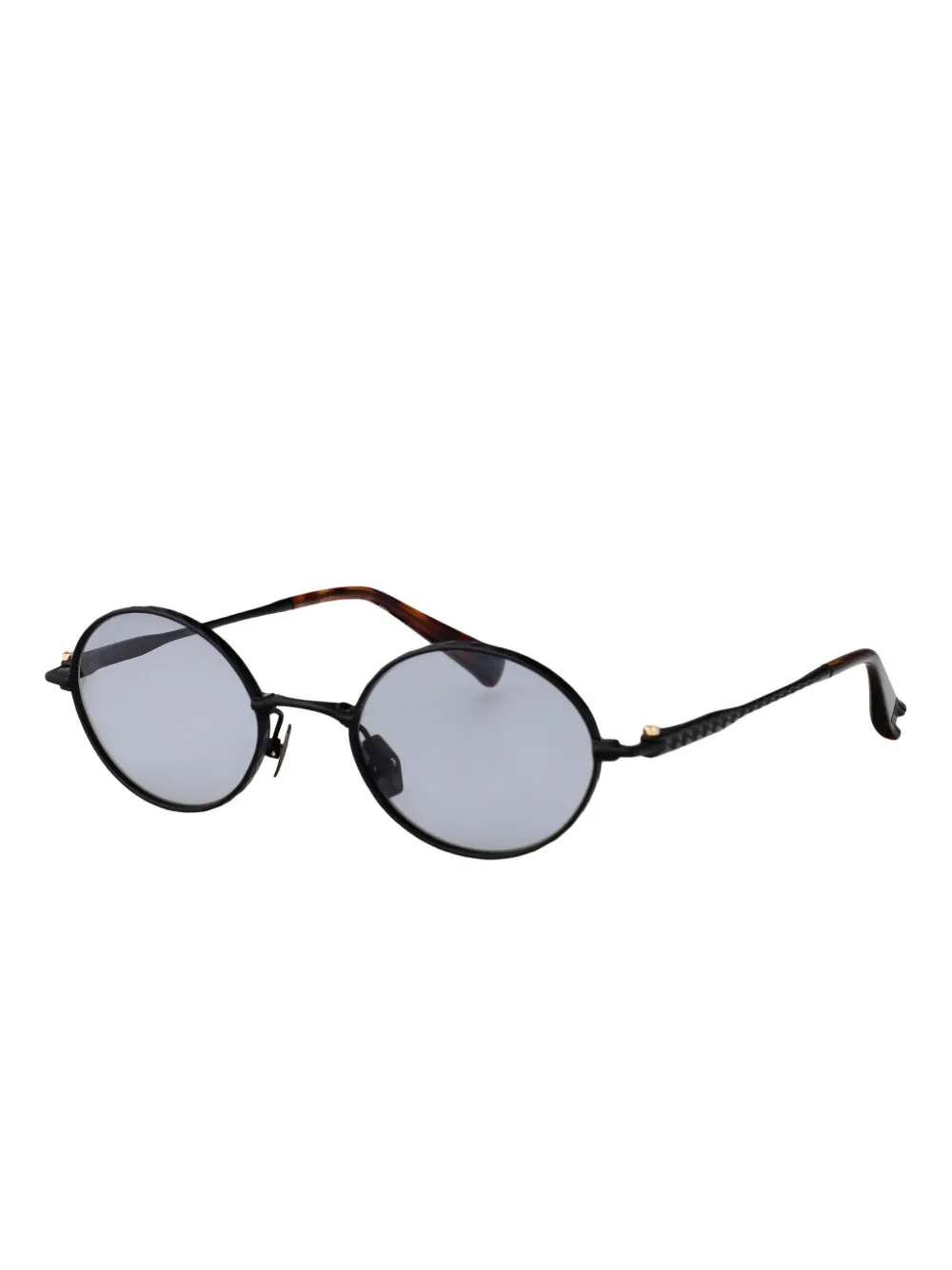 zwart rond montuur pootjes met textuur titanium grijze glazen Deze bril wordt verkocht met een beschermhoes.