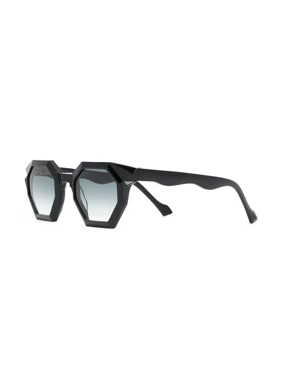 Zwart/blauw, blauwe glazen, zeshoekige wijzerplaat, glazen met kleurverloop, goudkleurig logo, goudkleurig materiaal, rechte pootjes en gebogen uiteinde. Deze bril wordt verkocht met een beschermhoes.. Alle brillen op FARFETCH worden verkocht met glazen die niet op sterkte zijn..