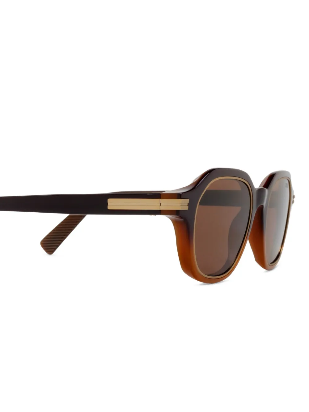 lichtbruin geometrisch montuur gekleurde glazen goudkleurige studs rechte pootjes Deze bril wordt verkocht met een beschermhoes.