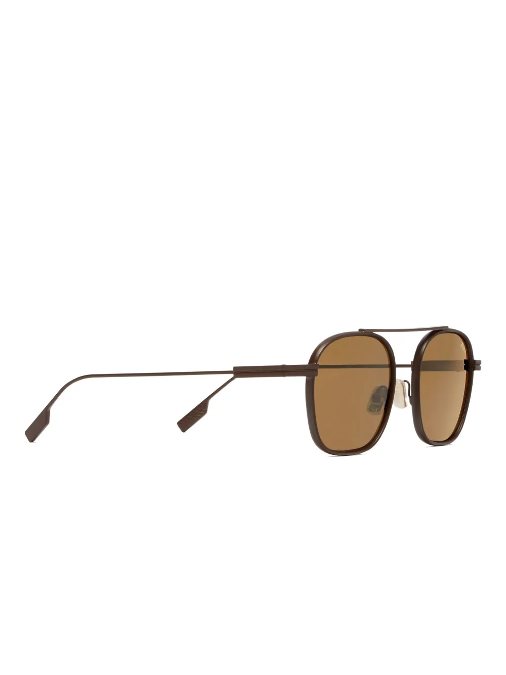 donkerbruin vierkant montuur dubbele neusbrug neuskussentjes rechte pootjes gewelfde uiteinden van de pootjes Deze bril wordt verkocht met een beschermhoes.